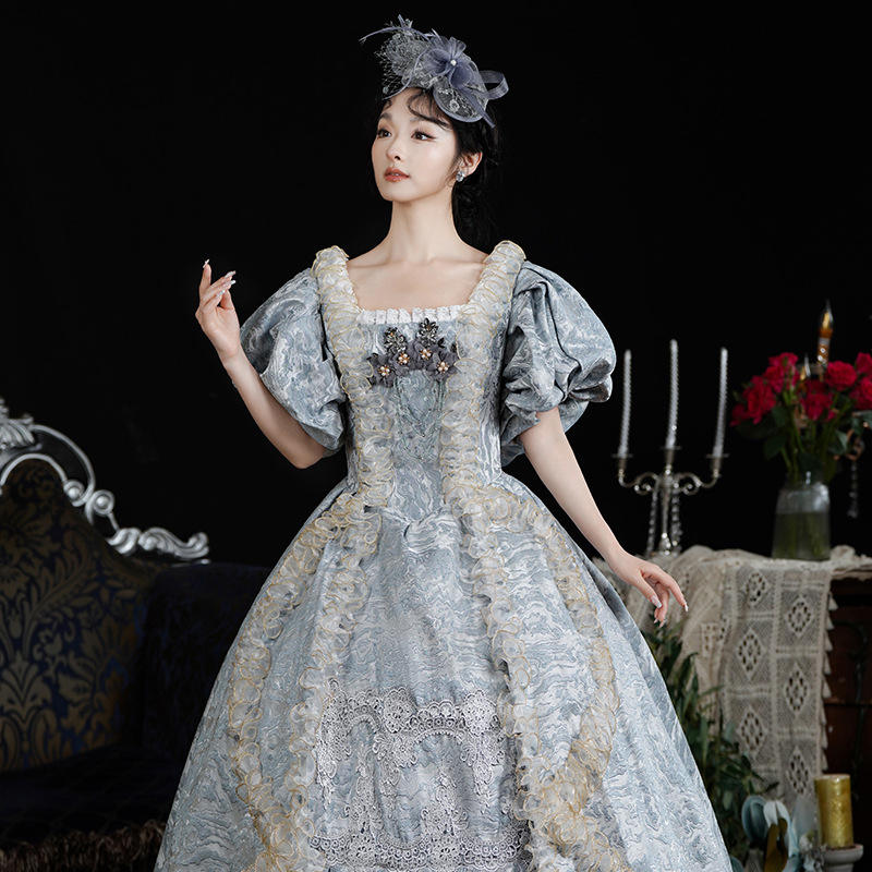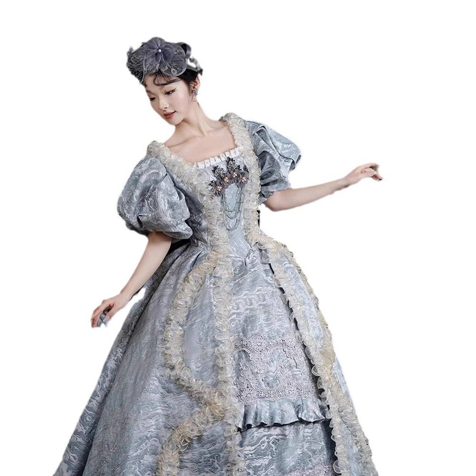 Nuevo vestido estilo europeo Retro Puff manga cumpleaños guión matar foto puesta en escena traje mujeres al por mayor