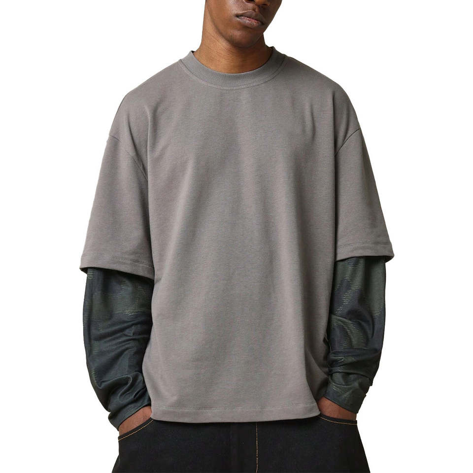 Nueva Camiseta de manga larga con hombros caídos para hombre, camiseta informal de doble capa de alta calidad con opción de logotipo personalizado en la camiseta