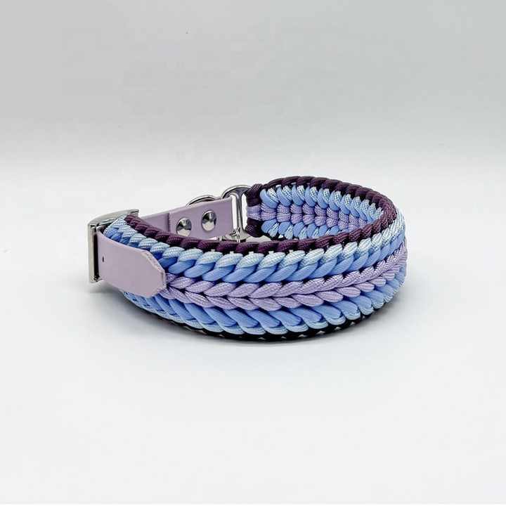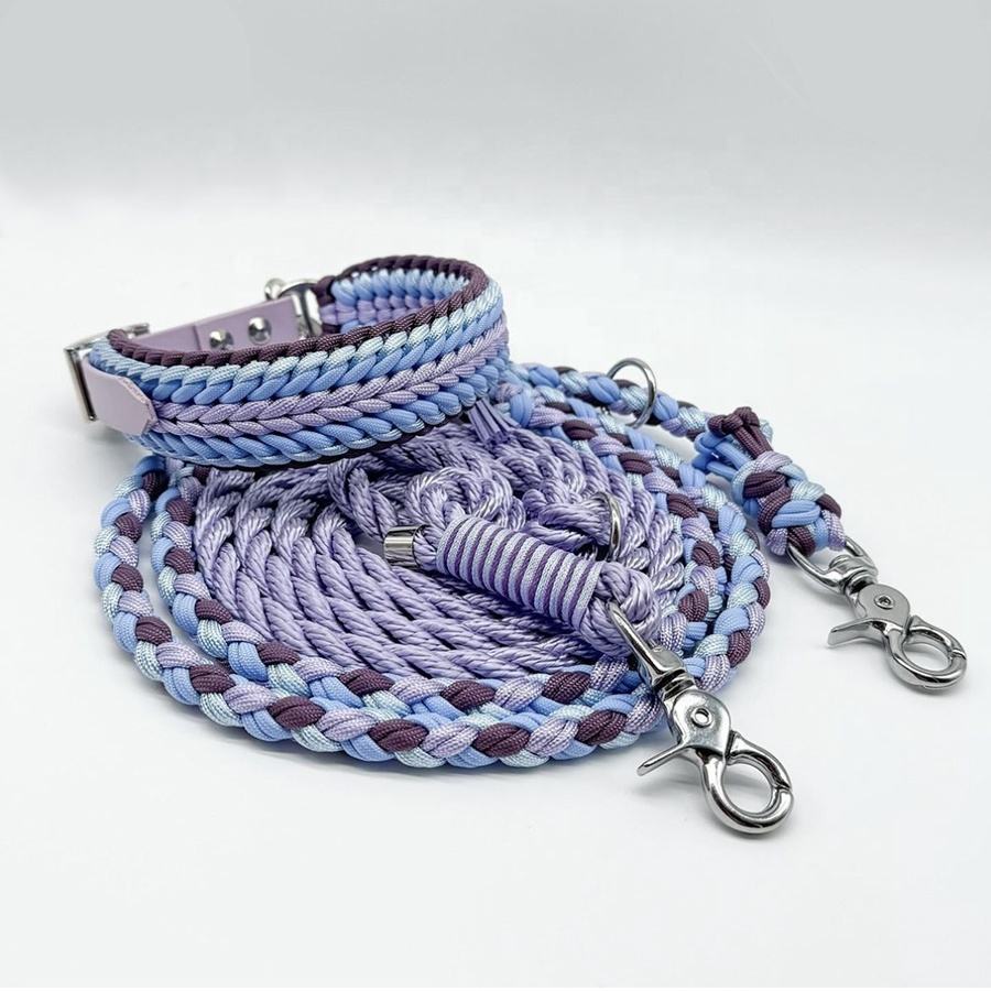 Nuevo logotipo personalizado duradero Paracord macramé hecho a mano trenzado entrenamiento Nylon cuerda Collar y plomo Collier Pour Chien Corde Pit Bull