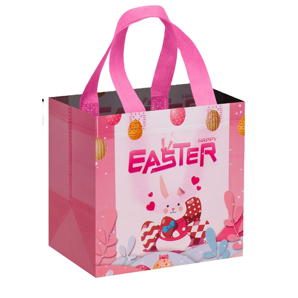 Nueva Bolsa de Compras de Tela No Tejida con Estampado de Conejo de Pascua y Colores de Huevos, Impermeable, Laminada, con Dibujos Animados, para Regalos de Pascua