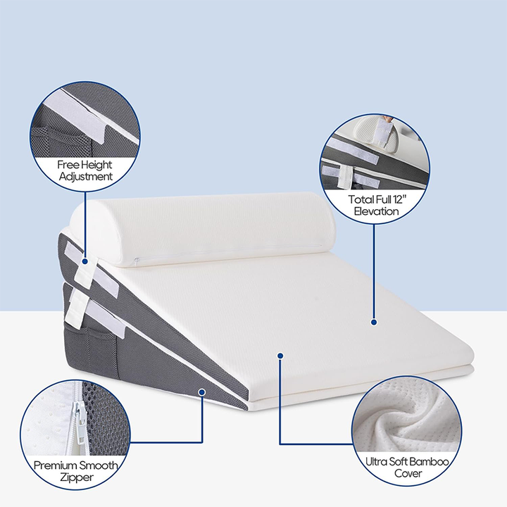 Nueva almohada de cuña de cama triangular 3 en 1 ecológica, cubierta extraíble de refrigeración con espuma viscoelástica, comodidad conforme al cuerpo