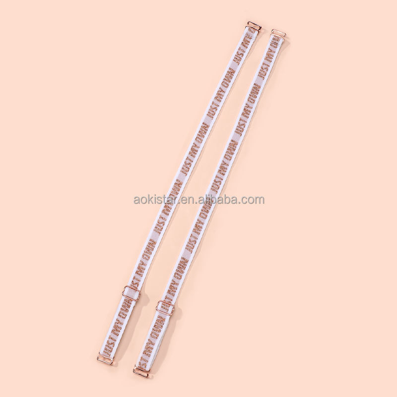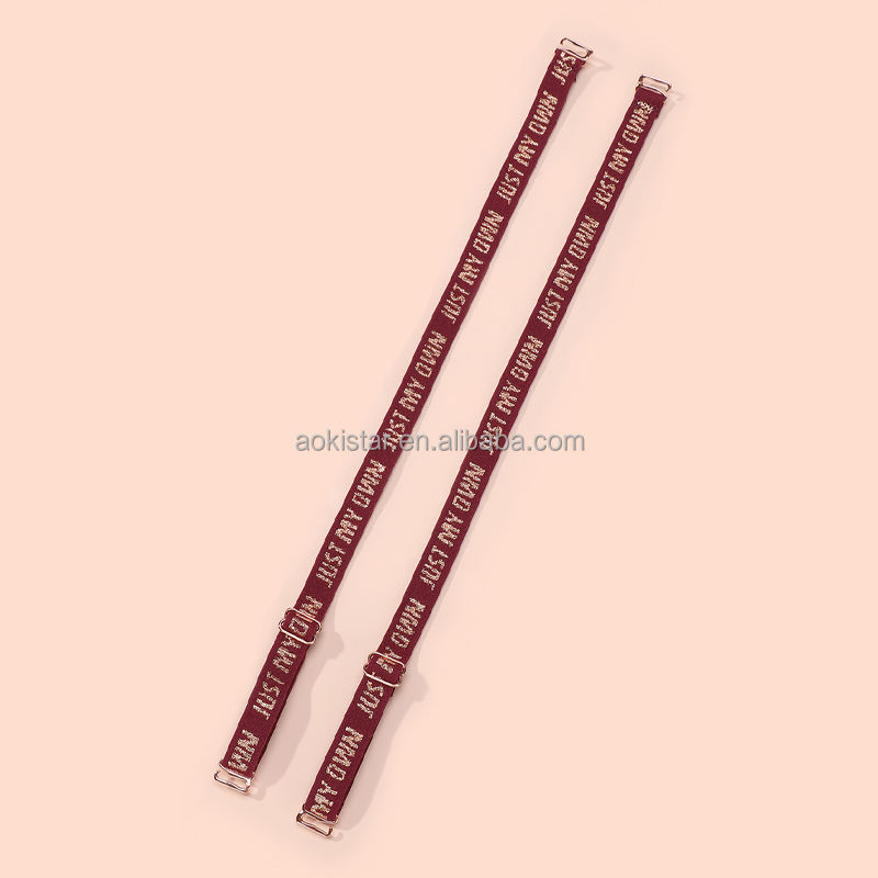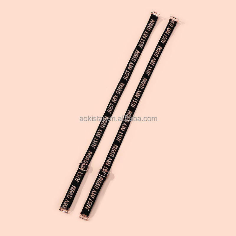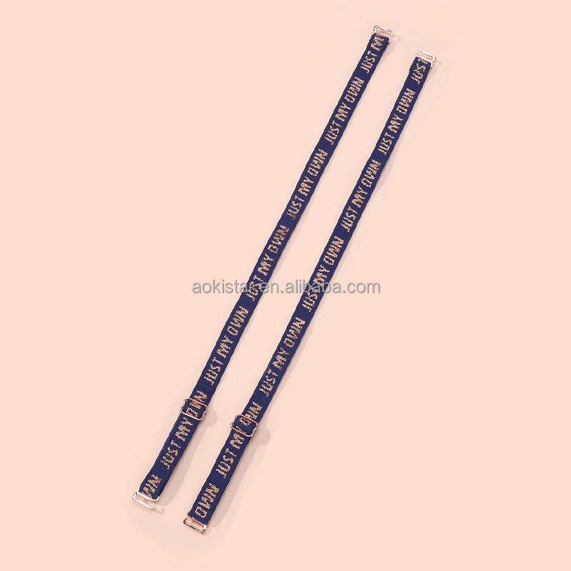 Nuevo Accesorio Elástico para Sujetador, Hebilla de Acero de 1.2cm, Color Jacquard con Letras, Correa de Hombro Ajustable para Sujetador