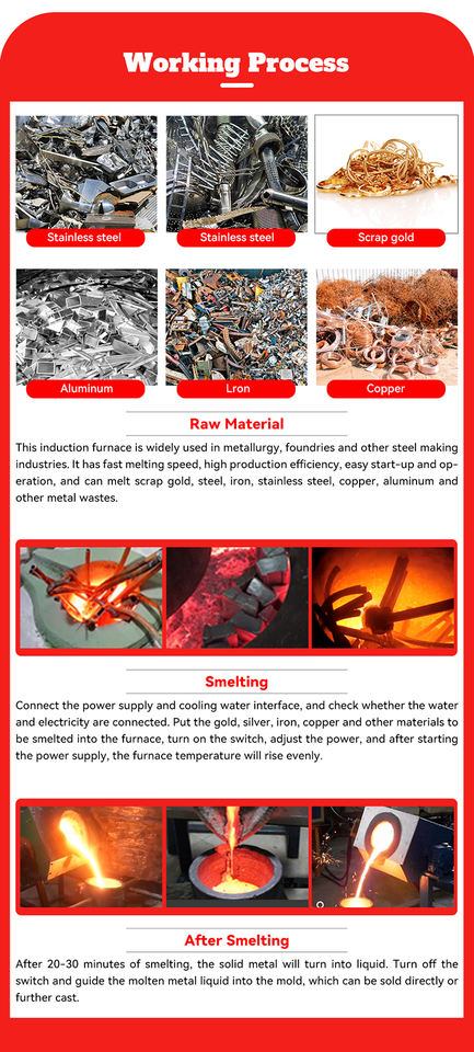Melting Material:Scrap Steel Iron Gold Copper Aluminum