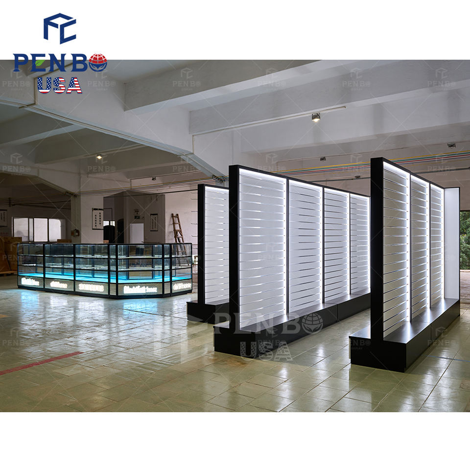 Nuevas tiendas de electrónica Exhibición de muebles Tienda minorista Accesorios para teléfonos Mostrador Exhibición de vidrio Escaparate Luz LED Tienda de teléfonos móviles