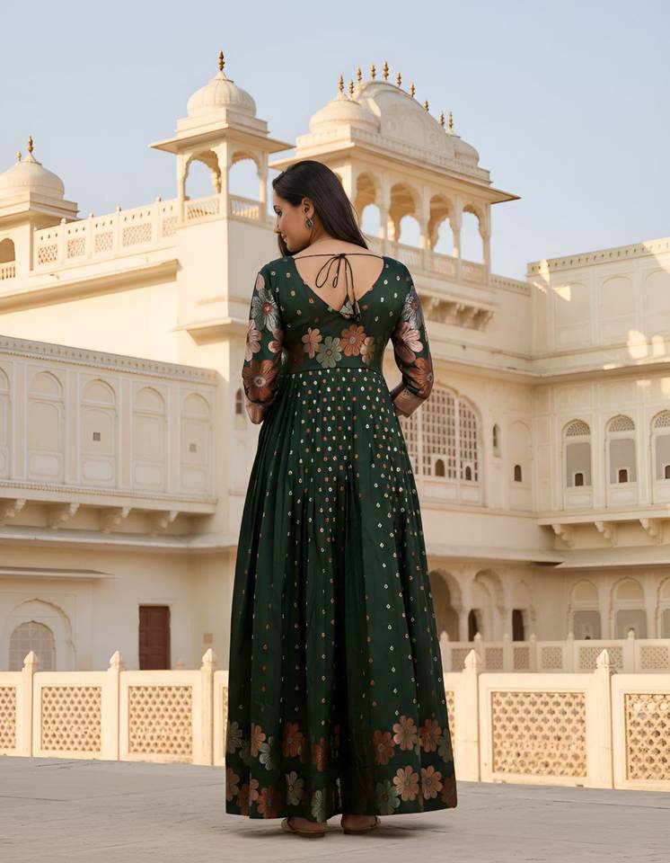 Nombre del Producto:Vestido de seda suave con trabajo de tejido Zari de cobre y oro