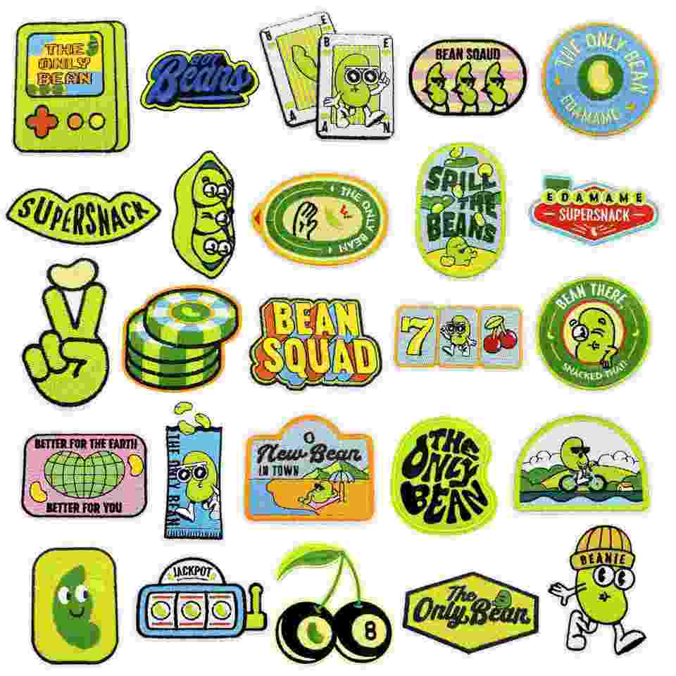 Nuevo Parche Bordado Termoadhesivo con Diseño de Frijol en Verde Primaveral para Decoración de Ropa, Sombreros y Bolsos