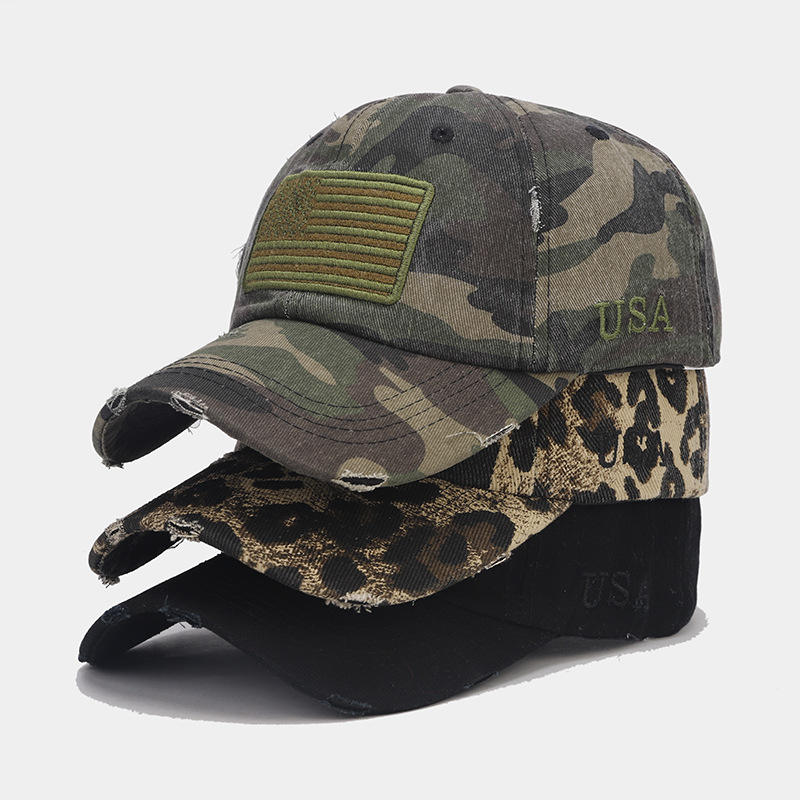 Nuevo bordado EE. UU. Letras Bandera Lavado Rasgado Pato Camo Parche Sombrero para el sol Mujeres al aire libre Gorras de béisbol para hombres