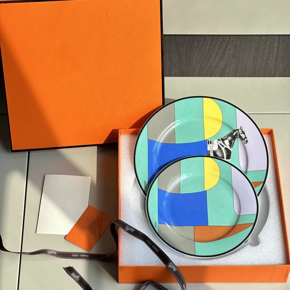 Nuevo plato y juego de cena de porcelana con diseño de caballo de lujo europeo