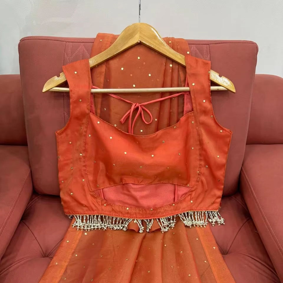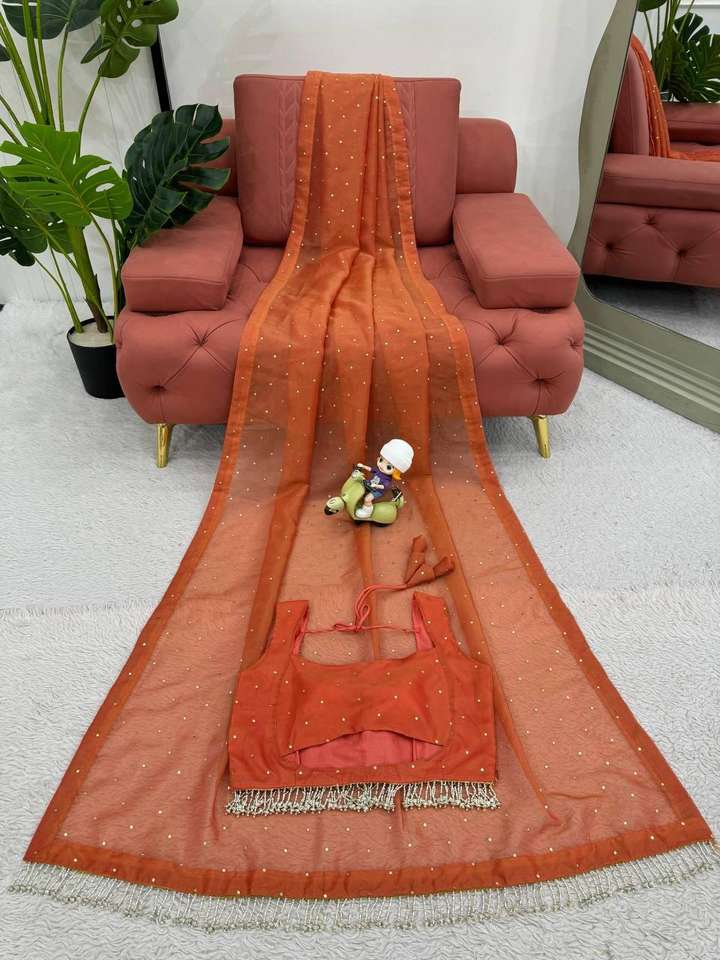 Nombre del producto:Chimar Tissue Silk Mukesh Work Saree con blusa