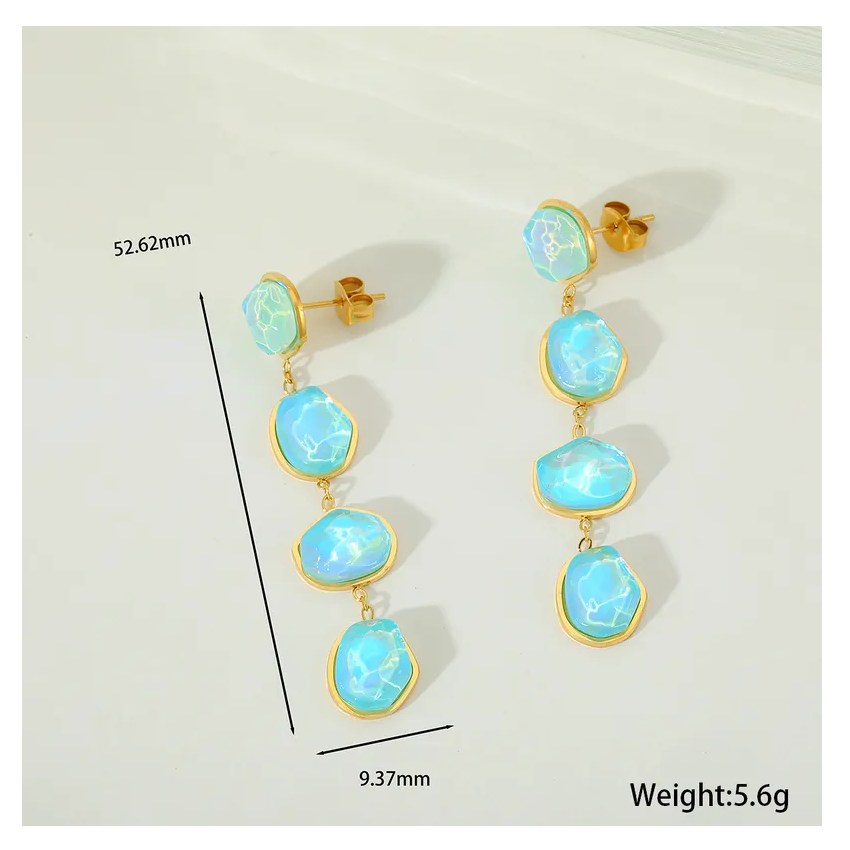 Nuevo exquisito dulce Irregular lago azul cristales no deslustre impermeable pendiente 18K chapado en oro joyería de acero inoxidable para regalo