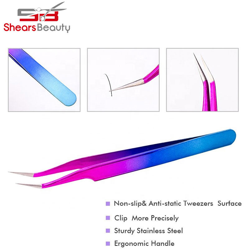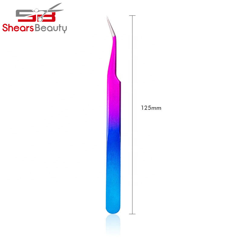 Pinzas de pestañas rectas curvas nuevas de etiqueta privada, herramienta de belleza antiestática de Color arcoíris para extensión de pestañas, Punta puntiaguda