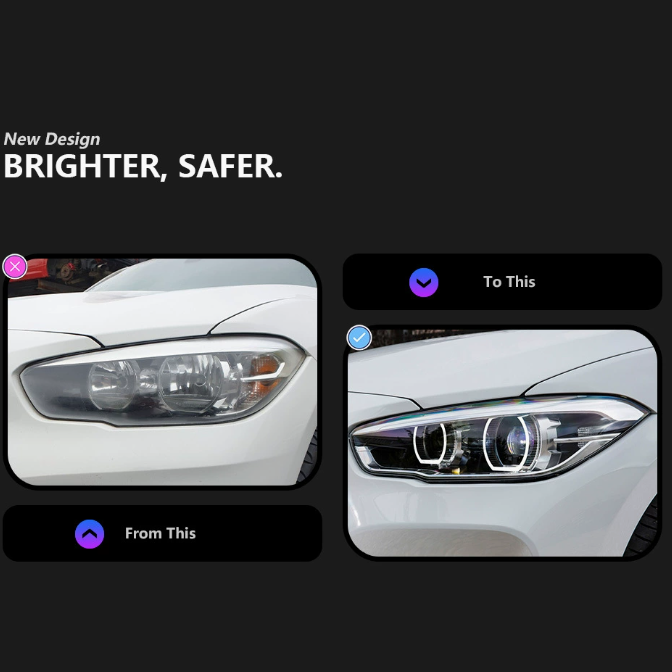 Nuevo Faro Delantero DRL F20 de Doble Color 6000K con Ojos de Serpiente para Serie 1 15-18, 36W, 6000 Lúmenes, 6V