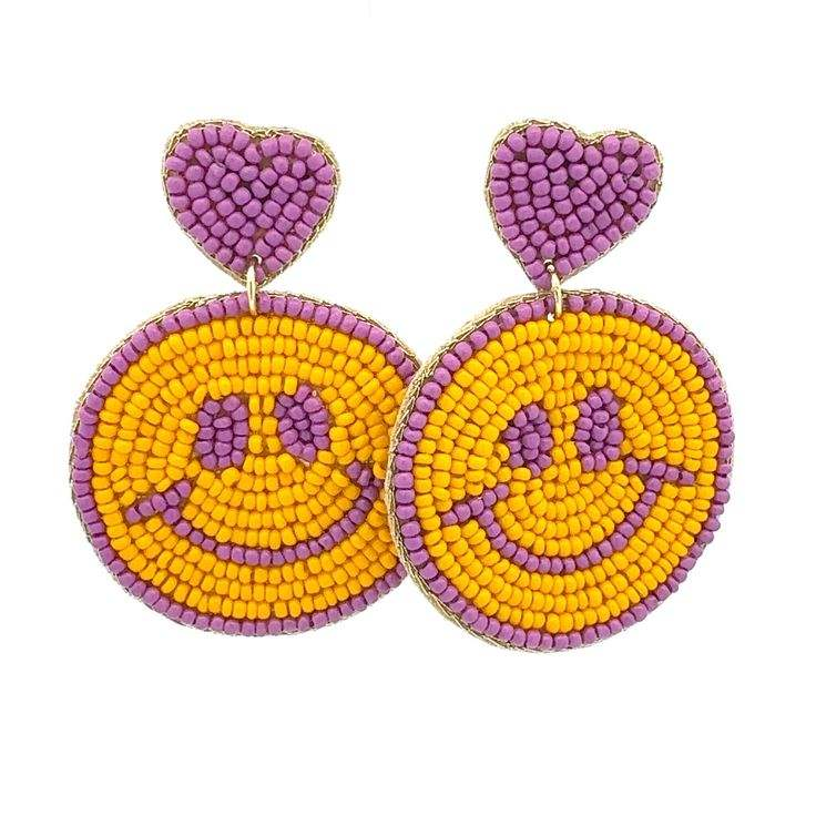 Pendientes de Moda con Diseño de Corazón y Cara, con Bordado de Cuentas Hecho a Mano en Varios Colores para un Estilo Moderno