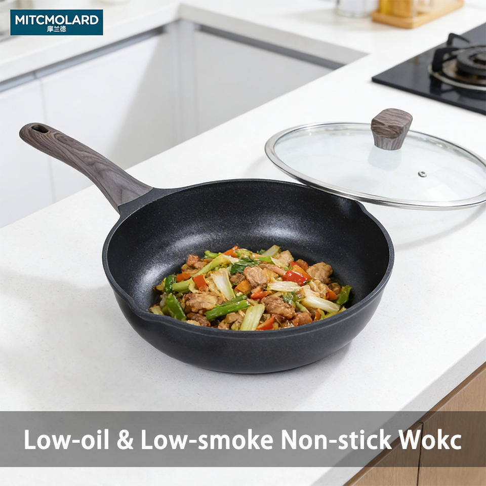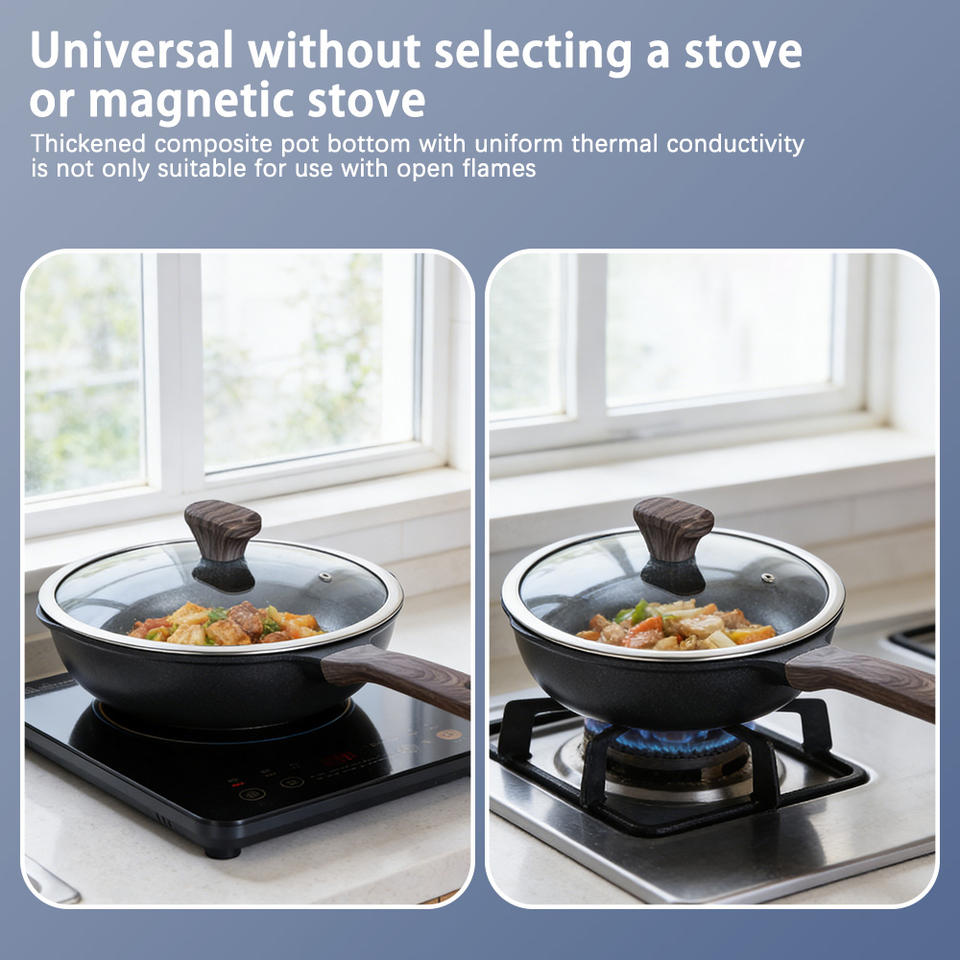 Nueva Sartén Wok Profunda de 28 cm para Cocina, Venta Directa de Fábrica, Personalizada, Antiadherente, de Aleación de Aluminio, con Revestimiento de PTFE y Tapa de Vidrio