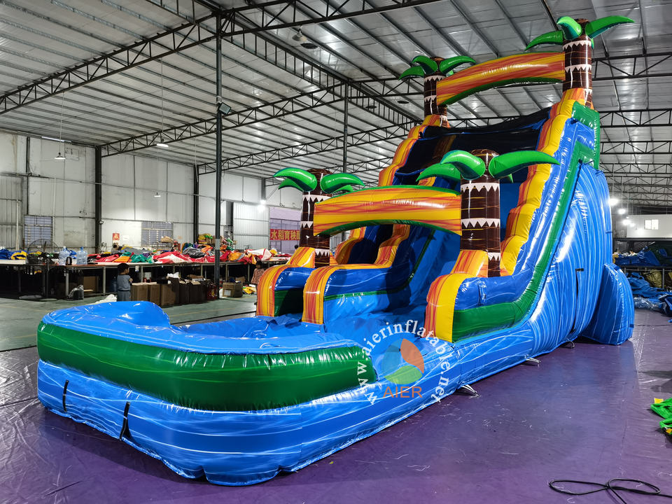 Nuevo Tobogán Acuático Inflable Tropical Comercial con Piscina Inflable Gigante para Alquiler en Fiestas, Precio de Fábrica