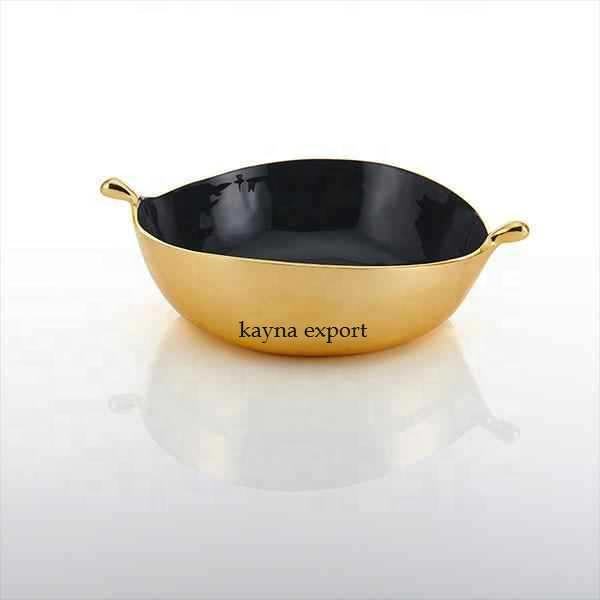 Nuevo cuenco de desorden con acabado dorado y esmaltado de lujo, cuenco de 3 niveles de metal recién llegado con cuenco con acabado esmaltado para dulces y cuenco dulce