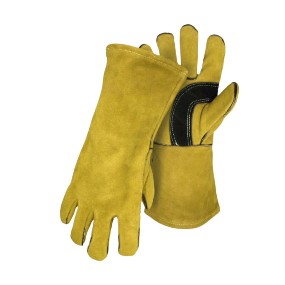 Nuevos guantes de soldadura de cuero con correa de muñeca ajustable a la moda, ajuste ergonómico para guantes de cuero con forro suave de larga distancia para una mayor comodidad