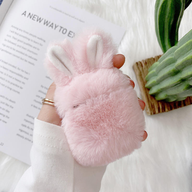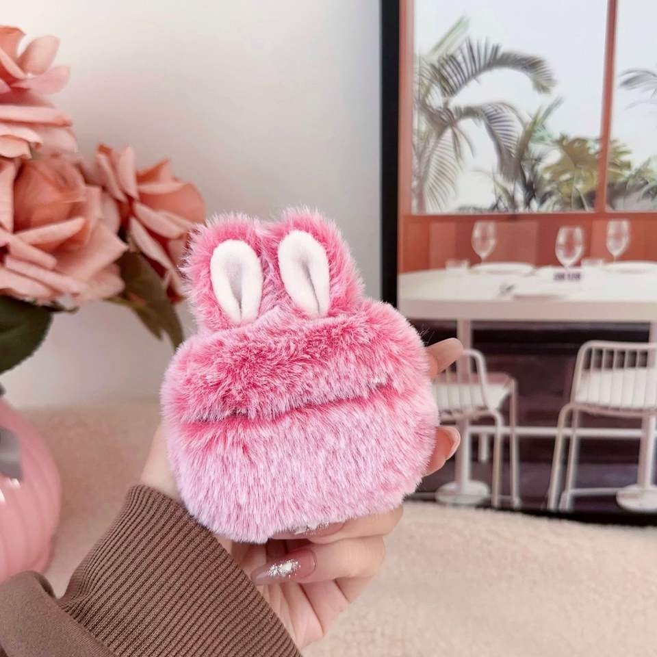 Nueva Funda de Peluche para Auriculares con Orejas de Conejo Applin para AirPods 1/2 Pro 2 3/4, Carga Inalámbrica, Funda Protectora de Peluche Suave y Esponjosa
