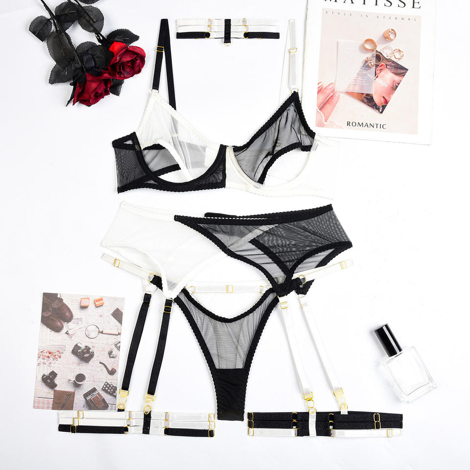 Conjunto de Lencería de Malla Transparente con Contraste de Color, Sexy y Transpirable, Conjunto de Sujetador y Braguita para Mujer Madura