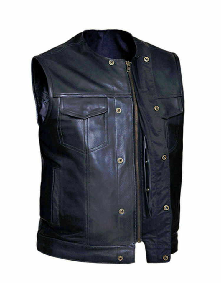 Nuevo Chaleco de Cuero de Oveja Genuino de Diseño Personalizado de Moda, Chaleco de Cuero para Hombre Transpirable y Resistente al Viento Más Vendido