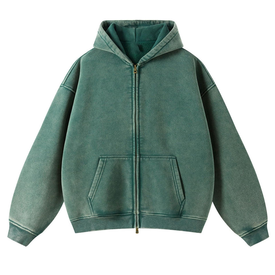 Nueva moda personalizada Color sólido peso pesado hombres Sudadera con capucha de alta calidad Vintage lavado ácido cremallera Sudadera con capucha para hombres