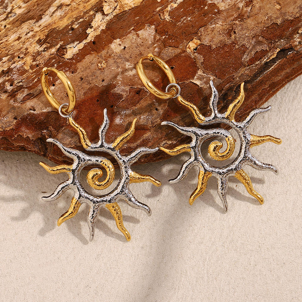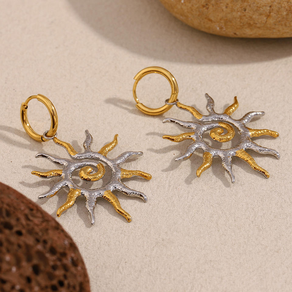 Nuevos pendientes de moda Pendientes de sol chapados en oro de 18 quilates de acero inoxidable para mujer