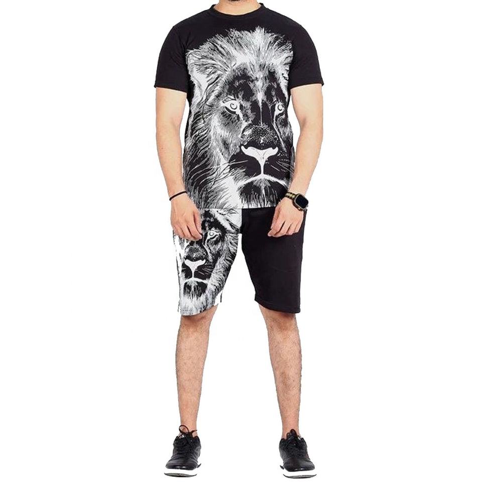 Nueva moda completa León impreso corto conjunto para los hombres por encargo de dos piezas impreso corto conjunto al por mayor barato Fitnesswear conjunto corto