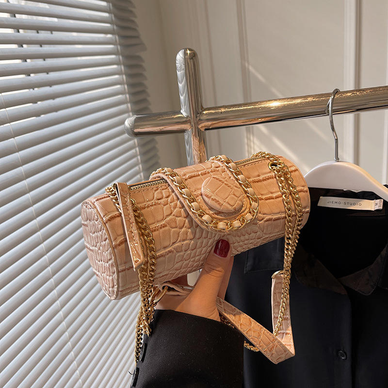 Bolso bandolera con cadena de alta calidad para mujer, bolso de hombro en forma de barril cilíndrico para mujer