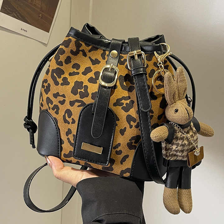 Nuevos bolsos de moda para mujer, bolsos con estampado de leopardo para mujer, bolso cruzado de un hombro, Bolso tipo cubo, monederos
