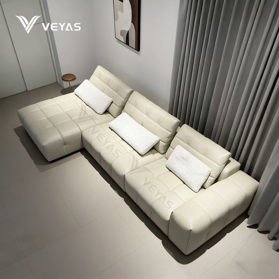 Nuevo Sofá Seccional Esquinero de Cuero Genuino Color Bronceado, Estilo Minimalista, de Lujo, 2, 3 y 4 Plazas, Tapizado y Curvo