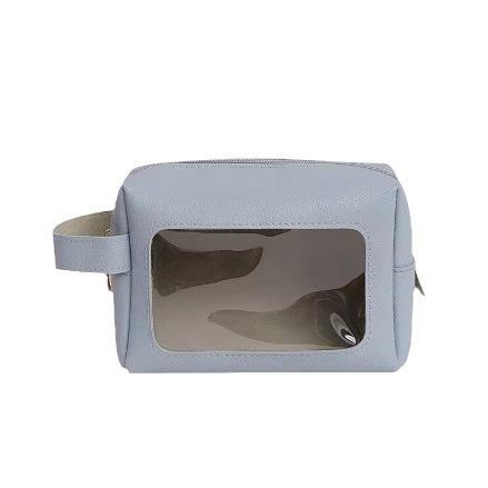 Nueva bolsa de maquillaje transparente de PVC de moda, poliéster duradero para neceser, logotipo personalizable, bolso impermeable para el cuidado de la piel