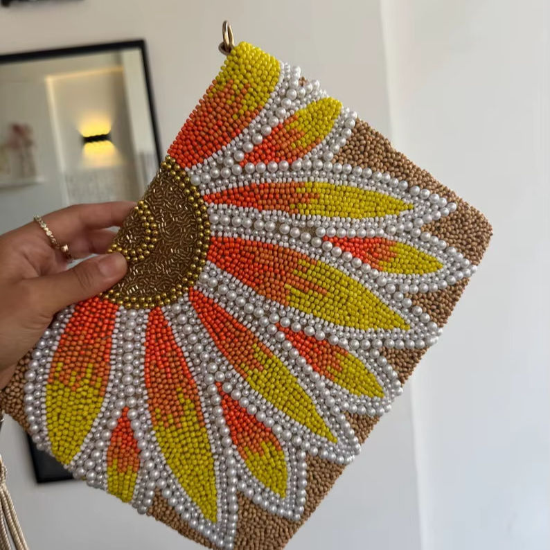 Nueva tendencia de moda bolso tejido con cuentas hecho a mano elegante temperamento bolso exquisito moda perla cadena hombro bandolera solapa
