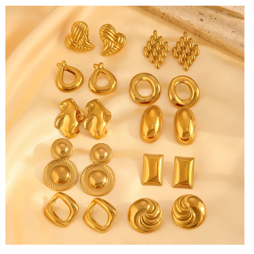 Nueva moda Vintage 18K oro geométrico aro C-forma Stud pendientes Acero inoxidable plateado joyería para mujeres de la India