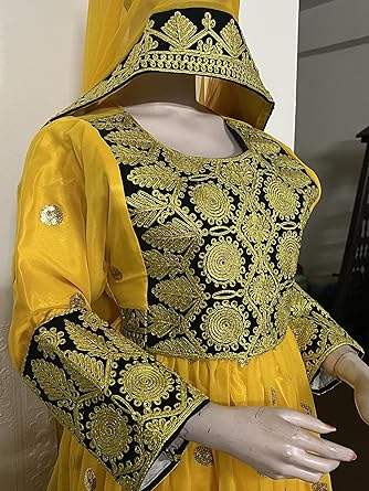 Nuevos conjuntos de traje afgano de moda para niñas transpirable Vintage Color amarillo Mehndi vestido afgano vestido de boda y fiesta