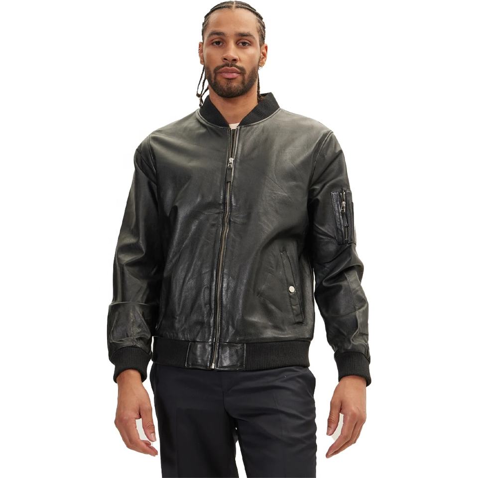Chaqueta de diseño personalizado para hombre, piel de oveja negra de alta calidad, nueva moda, cuello acanalado, soporte, temporada de invierno, cuero transpirable
