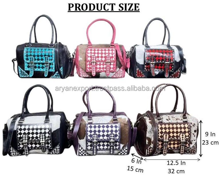 Nuevo Bolso de Hombro Cruzado de Cuero Genuino con Diseño a Cuadros de Gran Capacidad y Pelo Natural para Mujer