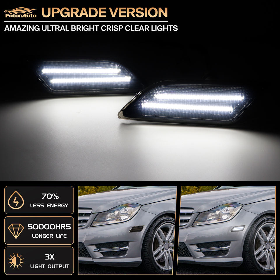 Nuevas Luces Laterales LED Blancas FetonAuto para Mercedes-Benz Clase C W204 C250/C300/C350/C63 AMG 2012-2014 con 1 Año de Garantía