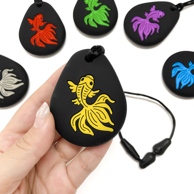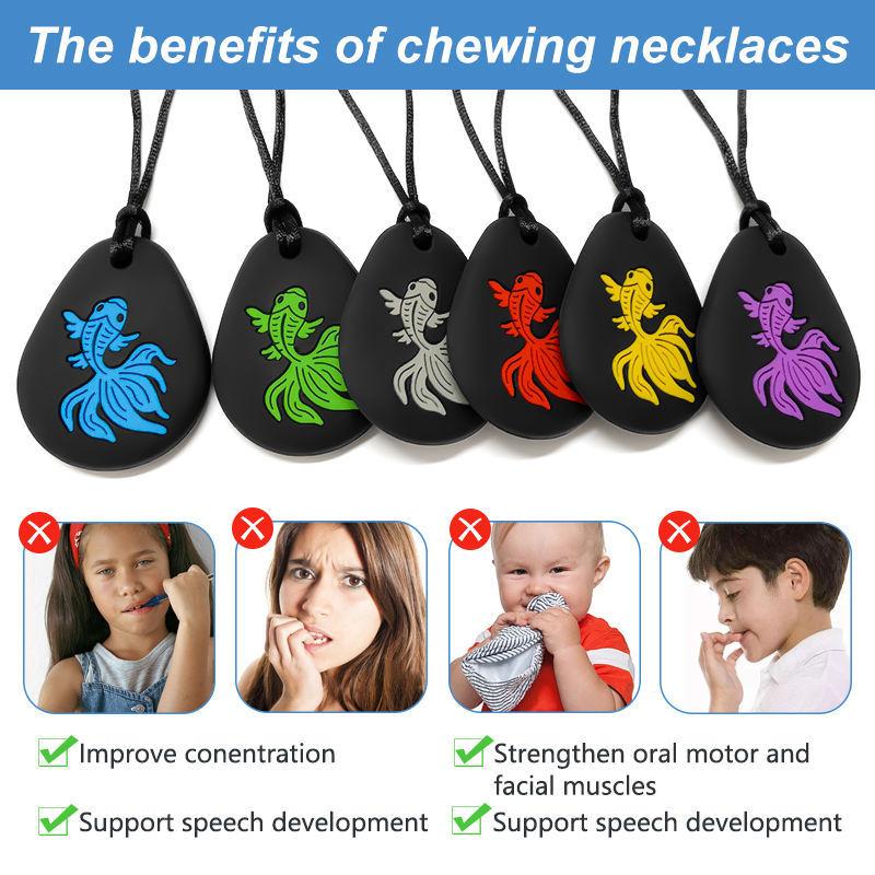 Nuevo Mordedor de Silicona con Forma de Pez para Bebés, Collar Masticable con Cadena de Cuerda, No Tóxico, para Necesidades de Dentición y Mordeduras, Ideal para Autismo