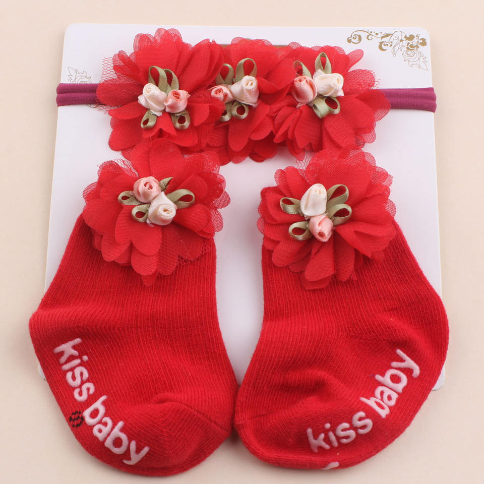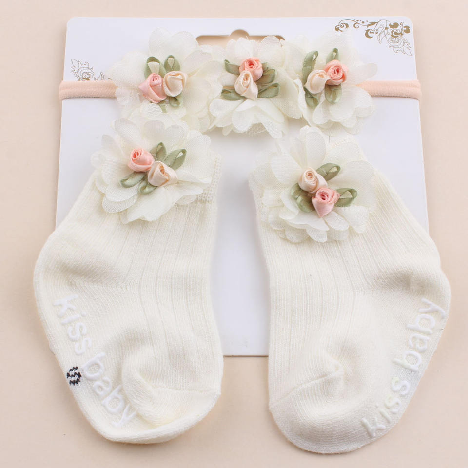 Nuevo Conjunto de Calcetines y Diadema con Flores para Bebé, Calcetines Antideslizantes para Primeros Pasos, Hermosos Calcetines con Diadema, Venta al por Mayor