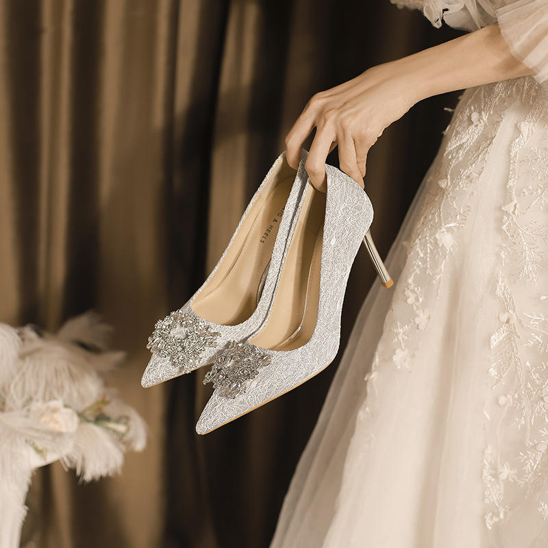 Nuevos Zapatos de Tacón Alto de Cuero Genuino Cómodos Estilo Francés, Tacones Finos Puntiagudos, Botones Cuadrados, Pedrería, Zapatos de Novia Xiuhe