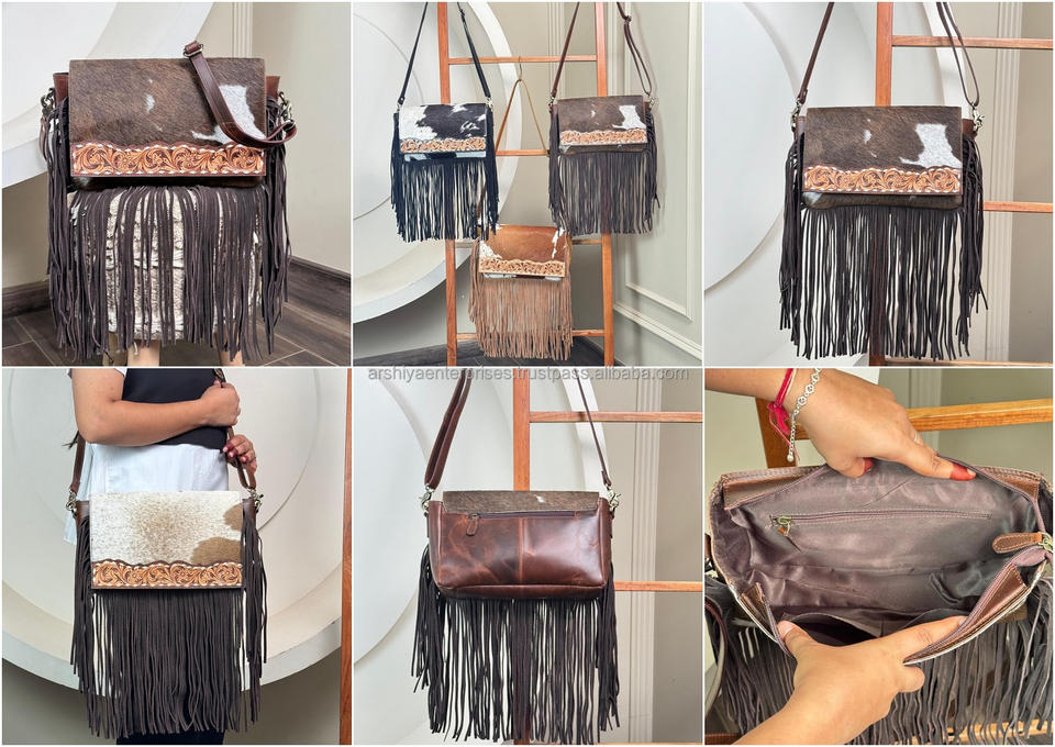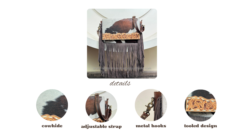 Product name:Hand Tooled Leather Fringe Crossbody Bag