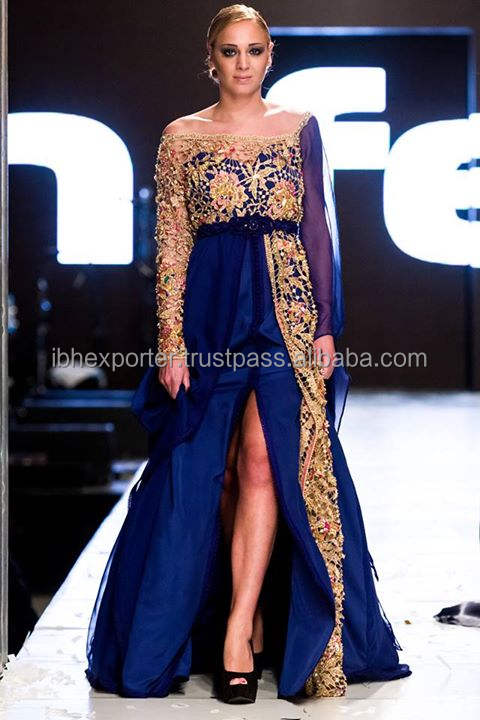 Nuevo frente abierto dos mangas diferentes estilo y sin cuello Kaftan con bordado y trabajo de cuentas