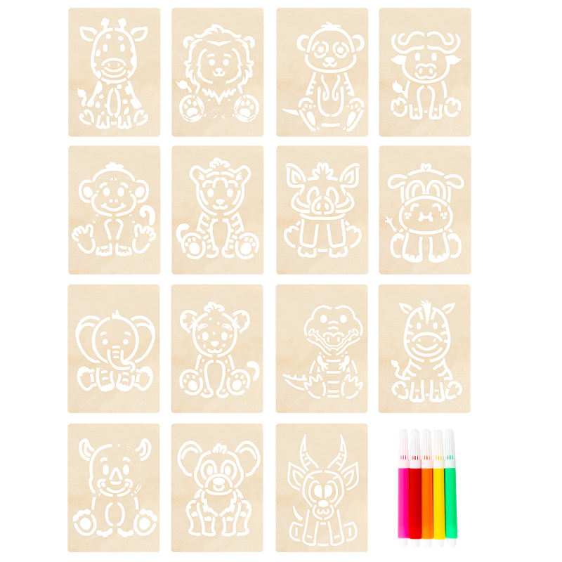 Nuevas Plantillas de Madera Reutilizables para Colorear, Divertidas, para Niños, Juguete de Dibujo Hueco, Tablero de Colorear para Jardín de Infancia