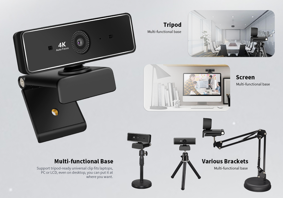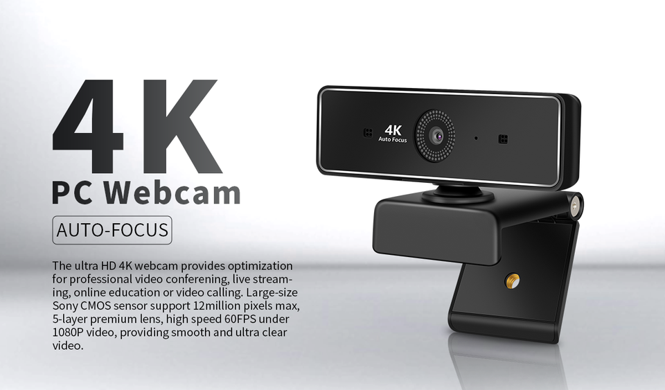 Cámara web para PC 4K de nueva generación, cámara de enfoque automático con zoom digital 10X para educación en línea y cámara web para videollamadas