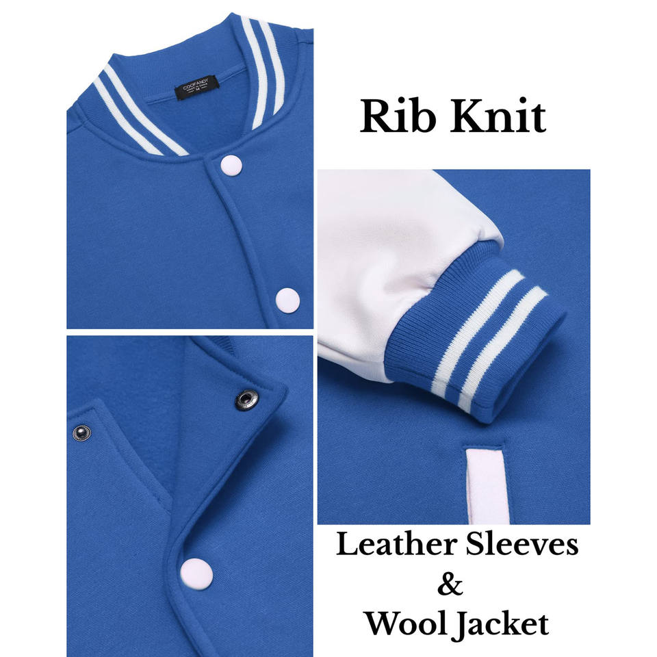 Chaqueta Varsity de Nueva Generación para Hombre, Estilo Retro Universitario, Chaqueta de Mezcla de Lana con Mangas de Cuero PU, Producción Personalizada con Marca