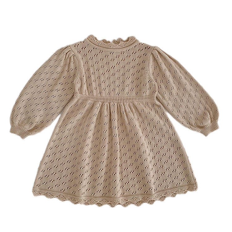 Nuevo Vestido de Princesa de Punto de Color Sólido para Niñas, Ropa de Hermanas con Mangas Abullonadas para Primavera y Otoño