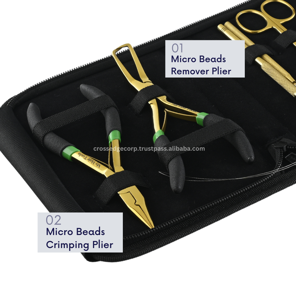 El kit de herramientas de extensión de cabello New Gold incluye el dedo de separación para coser en aguja tipo C y alicates removedores de microperlas precios al por mayor