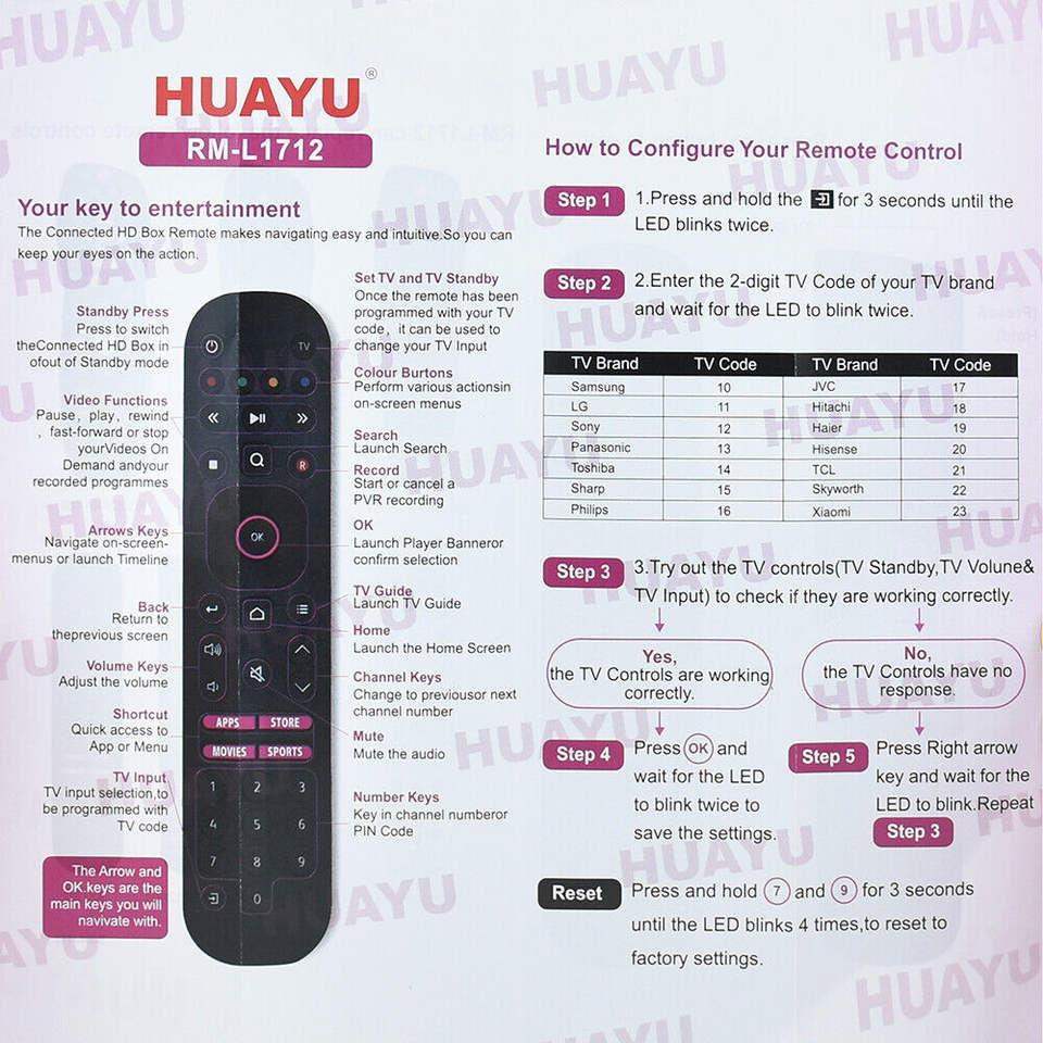HUAYU-mando a distancia Universal para RM-L1712, Control remoto Universal para decodificador de televisión Astro STV, 7 en 1, nuevo