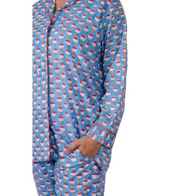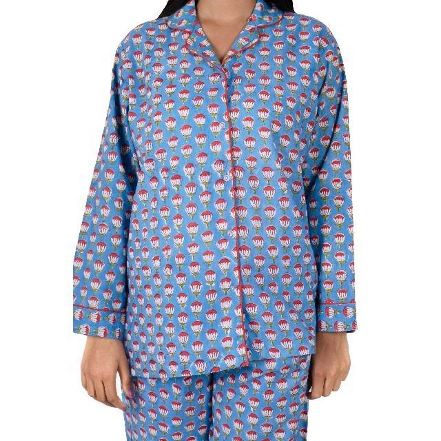 Nuevo conjunto de pijamas de algodón puro para mujer bloque de mano impreso Floral térmico PJ vestido de verano estilo 2XL tamaño damas de honor temporada primavera