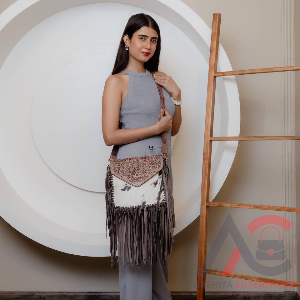 Product name:Hand Tooled Leather Fringe Crossbody Purse